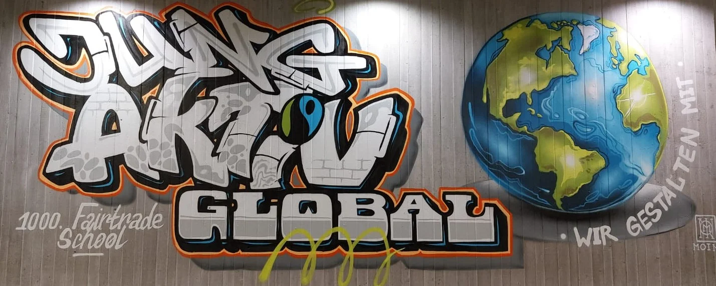 Darüber hinaus präsentierte die Klasse im Rahmen des Basars auch weitere kreative und faire Ideen: So wurden etwa fair gehandelte Farben und abgecycelte Bilderrahmen ausgestellt. Auch hier zeigte sich das umfassende Engagement der Schülerinnen und Schüler, denn von der Preiskalkulation über die Gestaltung bis hin zur Präsentation lag alles in ihrer eigenen Verantwortung. Damit bewies die Klasse, dass nachhaltiges und faires Handeln nicht nur inhaltlich, sondern auch gestalterisch und organisatorisch vollständig von den Jugendlichen getragen werden kann.