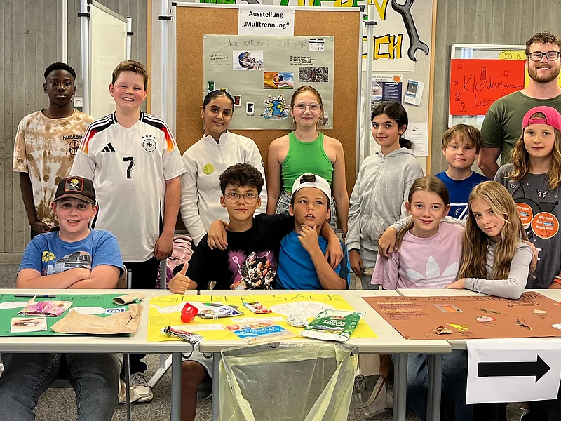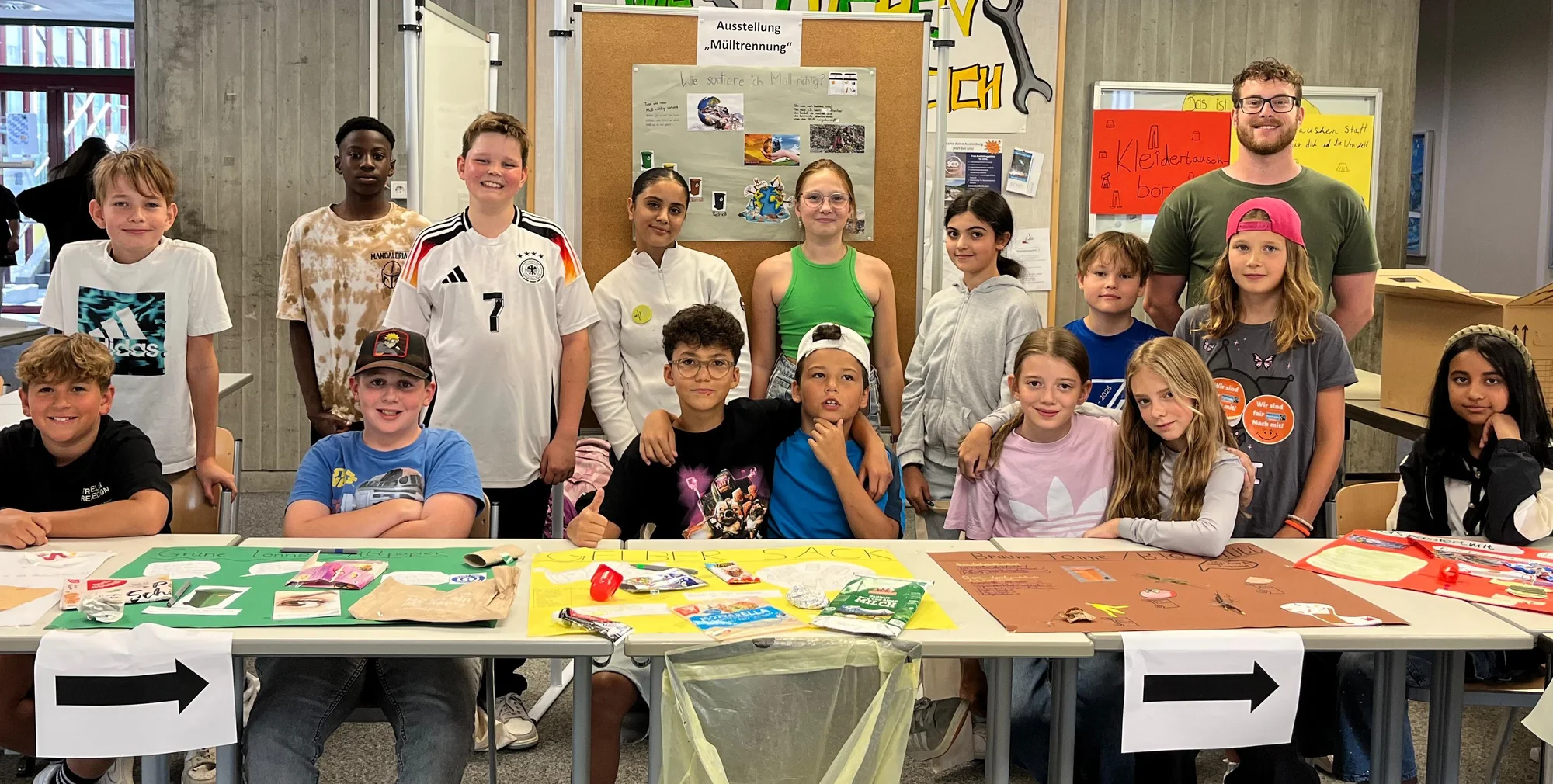 Um zusätzlich die Wichtigkeit von Umweltschutz und Nachhaltigkeit zu unterstreichen, gestaltete die Klasse 5a unter Leitung von Herrn Rumpler eine Ausstellung zum Thema „Mülltrennung“. Hierbei war es den Schülerinnen und Schülern der 5a ein Anliegen, dass sie das Verständnis für nachhaltige Entwicklung ihrer Mitschülerinnen und Mitschüler fördern und sie ihnen bewusst machen, welcher Müll überhaupt in welche Tonne kommt. Die Kinder fertigten dafür Plakate an, auf welchen sie die wichtigsten Fragen zum Thema „Mülltrennung“ beantworteten, wie beispielsweise „Was ist Müll überhaupt?“, „Wie trenne ich Müll richtig?“, „Was passiert mit deinem Müll, nachdem du ihn wegwirfst?“, „Worin unterscheiden sich Recycling, Upcycling und Precycling?“ oder „Was ist Nachhaltigkeit?“. Die kreativen Plakate wurden schließlich ausgestellt und die Klasse 5a stand ihren Schulkameraden und Schulkameradinnen drei Stunden lang für Erklärungen, Nachfragen oder Unklarheiten zur Verfügung. Abschließend konnten die ausstellungsbesuchenden Schulkinder ihr Wissen in einem Quiz testen und einen kleinen Preis gewinnen.