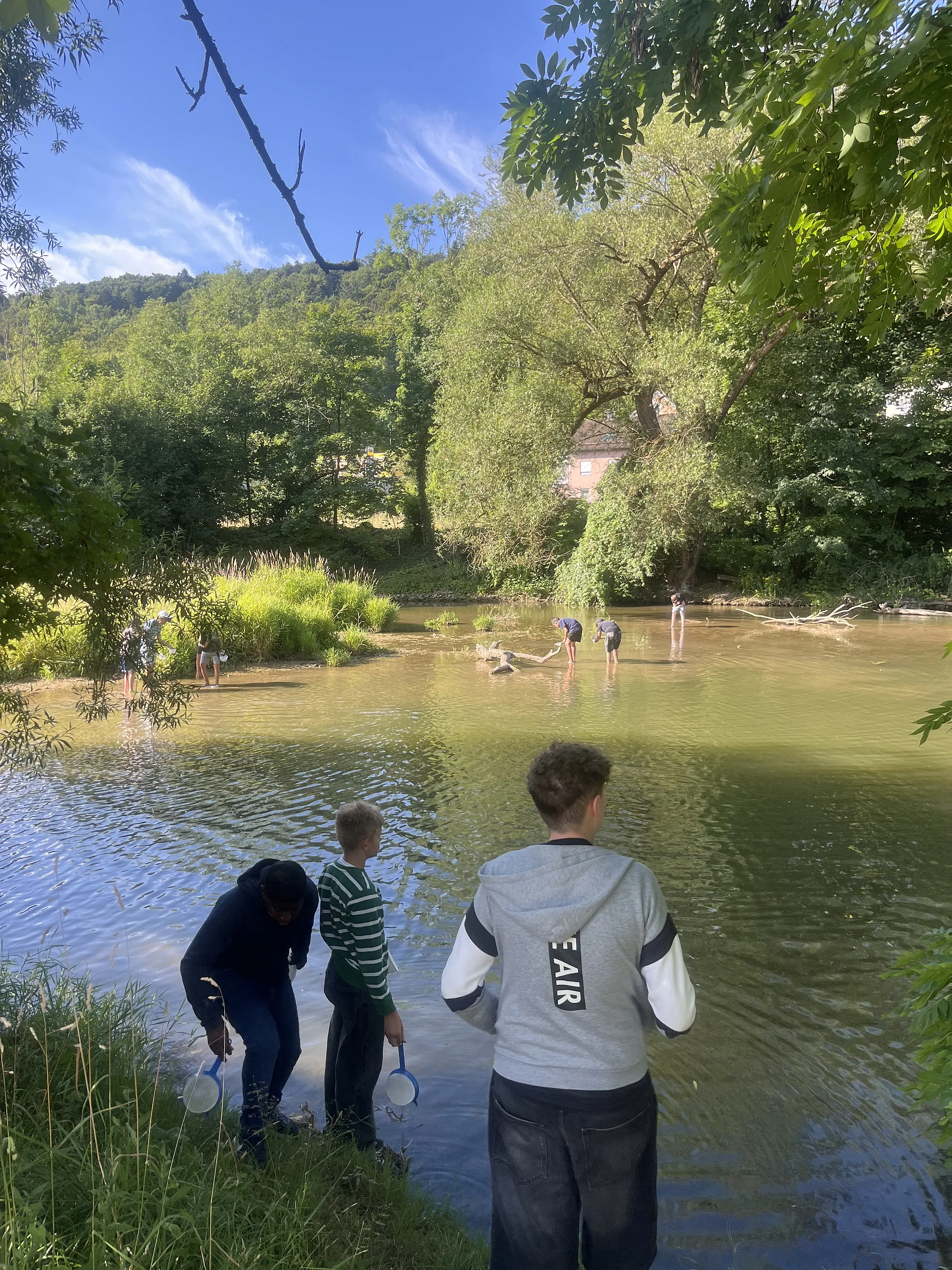 Begleitet von ihren Lehrern Stefan Salzberger und Christoph Sigl, die beide aktive Mitglieder im örtlichen Anglerverein sind, erkundeten die Kinder das Leben in und an der Altmühl. Ausgestattet mit Keschern, Eimern und Bestimmungsbüchern ging es auf Entdeckungstour – mit großem Interesse wurden Wasserinsekten, Kleintiere und sogar ein kleiner Fisch gefunden. Nach kurzer Betrachtung wurden natürlich alle Tiere wieder vorsichtig zurück ins Wasser gesetzt.