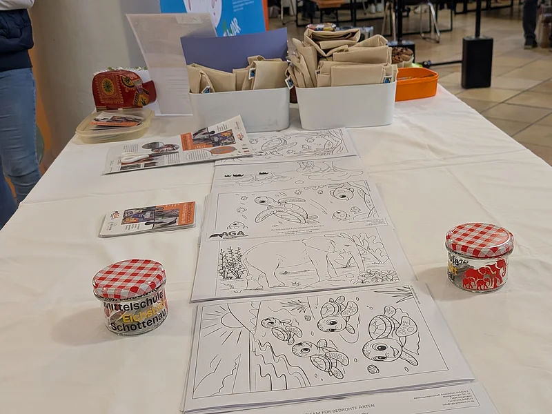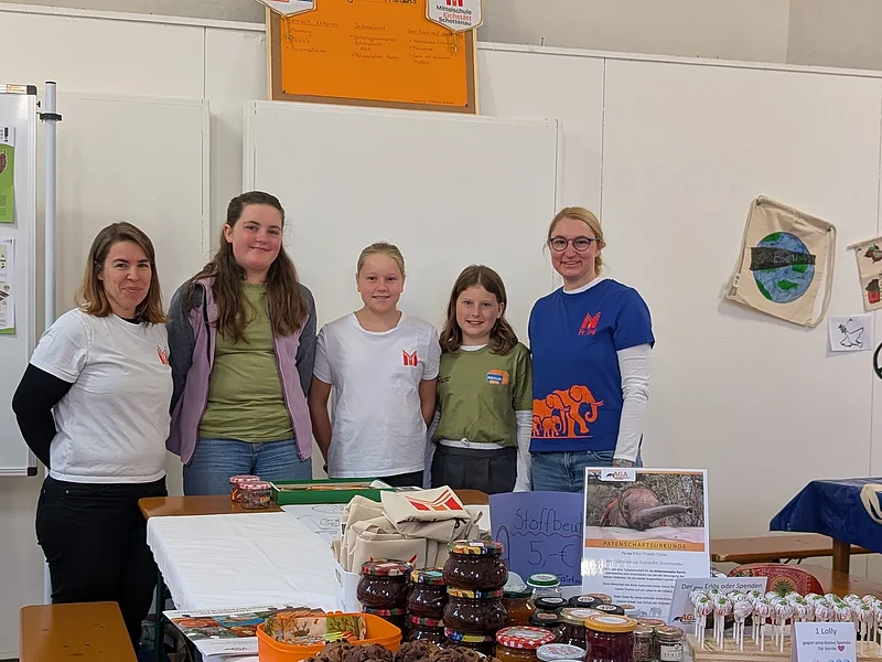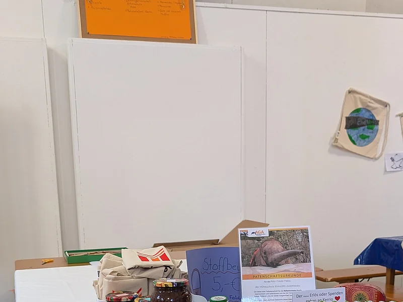 Ausgangspunkt war der Gedanke, das Bewusstsein für den Artenschutz und fairen Handel zu stärken und konkrete Handlungsmöglichkeiten im Alltag aufzuzeigen. Die Schülerinnen und Schüler betreuten Mitmachaktionen, wie z. B. einen Maltisch, an dem Elefanten und Schildkröten kreativ gestaltet werden konnten. Der Spendenkiosk war ein weiteres zentrales Angebot. Dort konnten Besucherinnen und Besucher direkt für unsere Schulpatenschaft für den kleinen Elfantenwaisen Kerrio spenden oder aktiv Projekte unterstützen, die die Fairtrade-Gruppe der Mittelschule Eichstätt auswählte. Das Team erklärte, dass Spenden in erster Linie dazu dienen, Schulmaterialien, Informationsmaterialien für kommende Aktionen sowie kleine Fairtrade-Workshops für jüngere Klassen zu finanzieren.