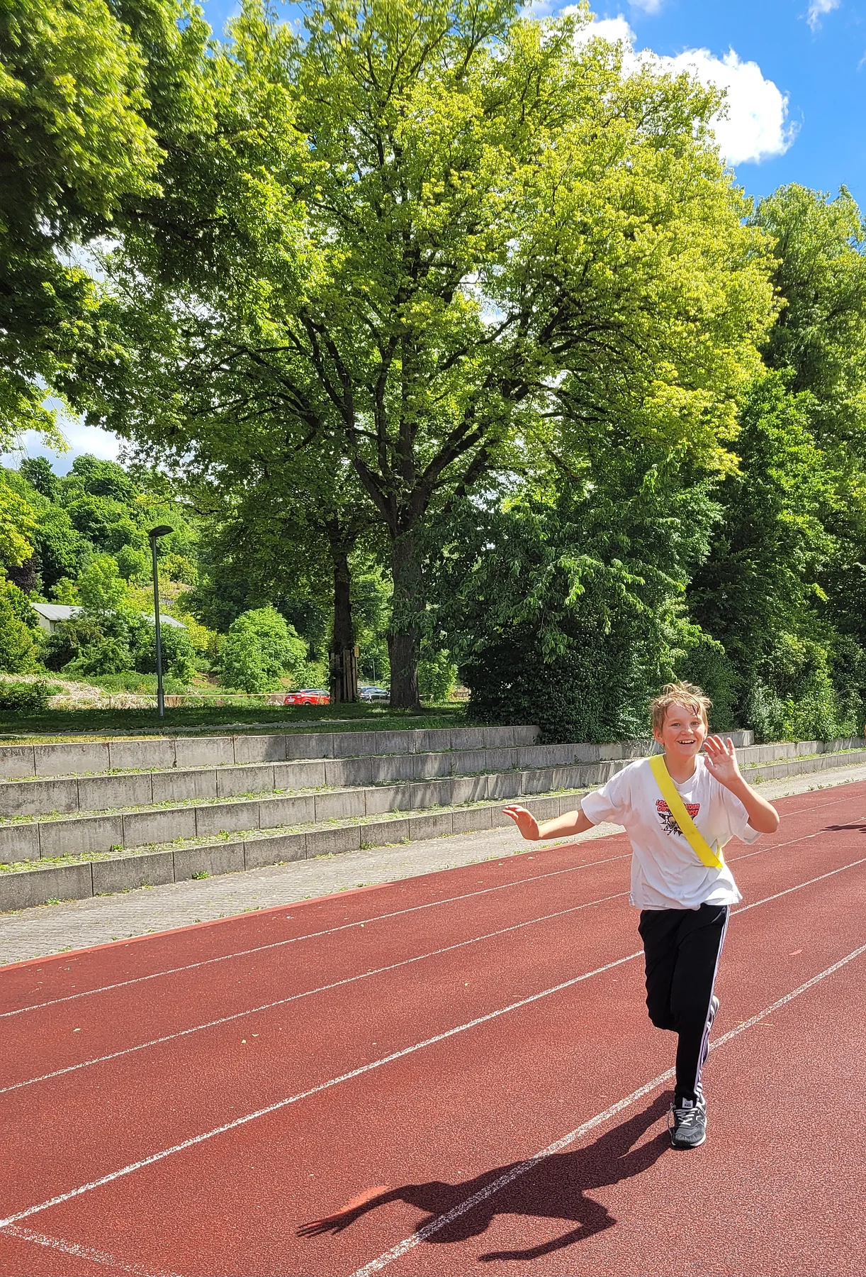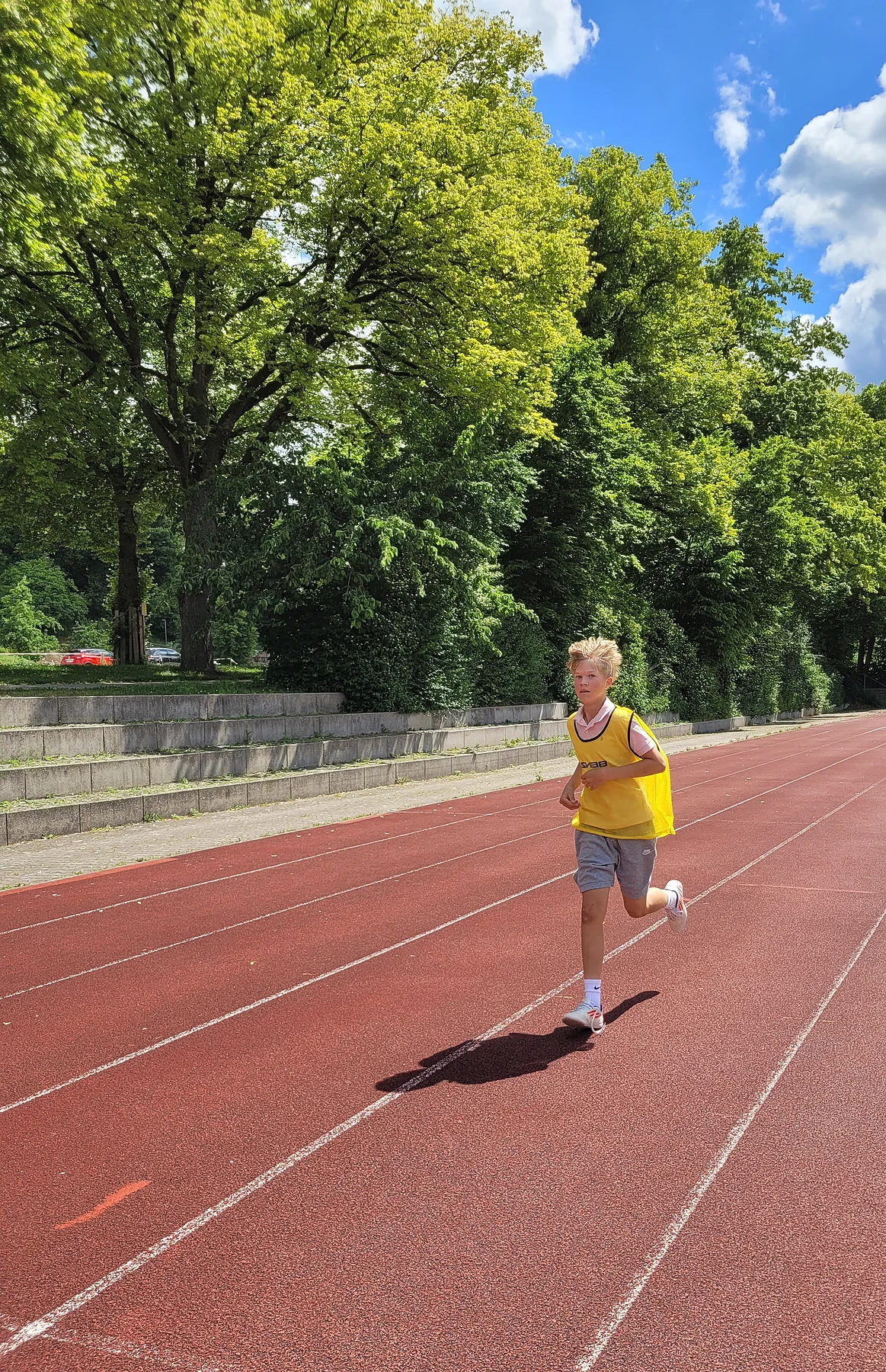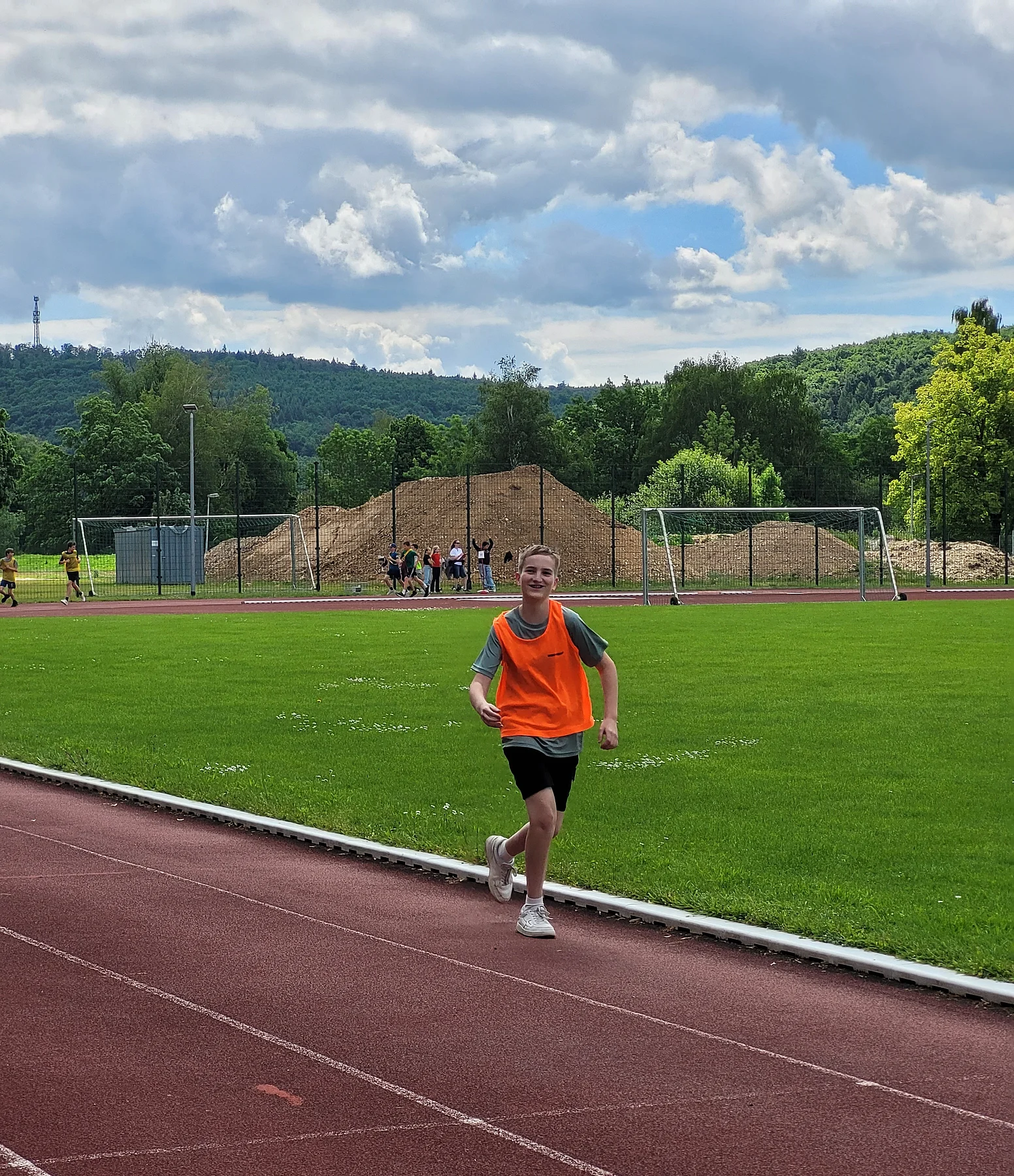 In der 3. Stunde liefen die 5. und 7. Klassen los zur Bepo. Dort angekommen wärmten sich die Kinder auf, während Herr Grienberger motivierende Musik dazu abspielte. Dann ging es endlich los!