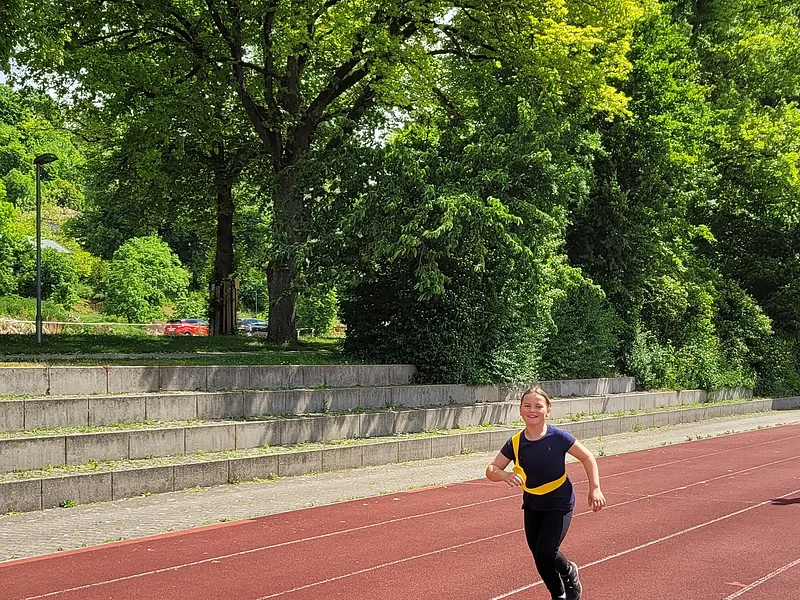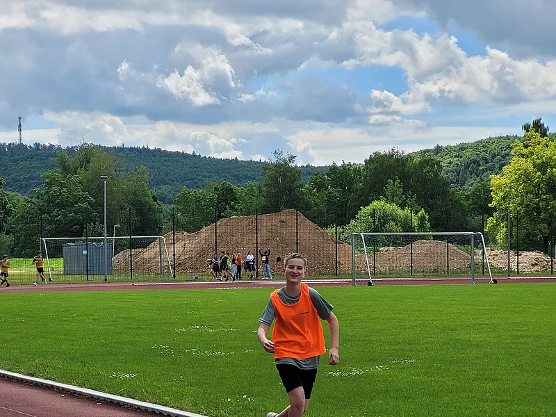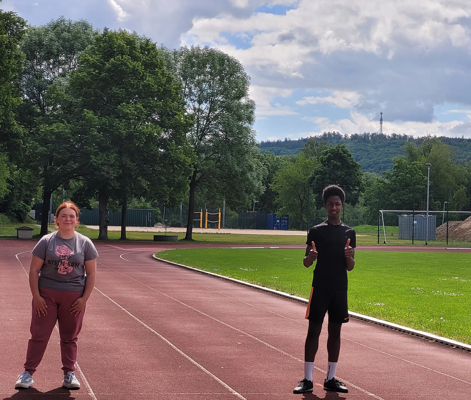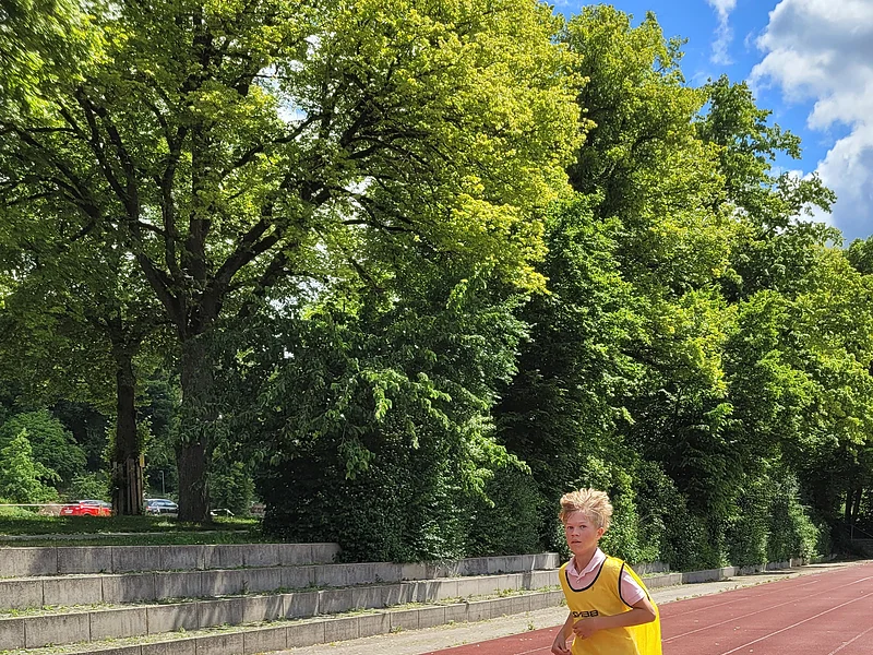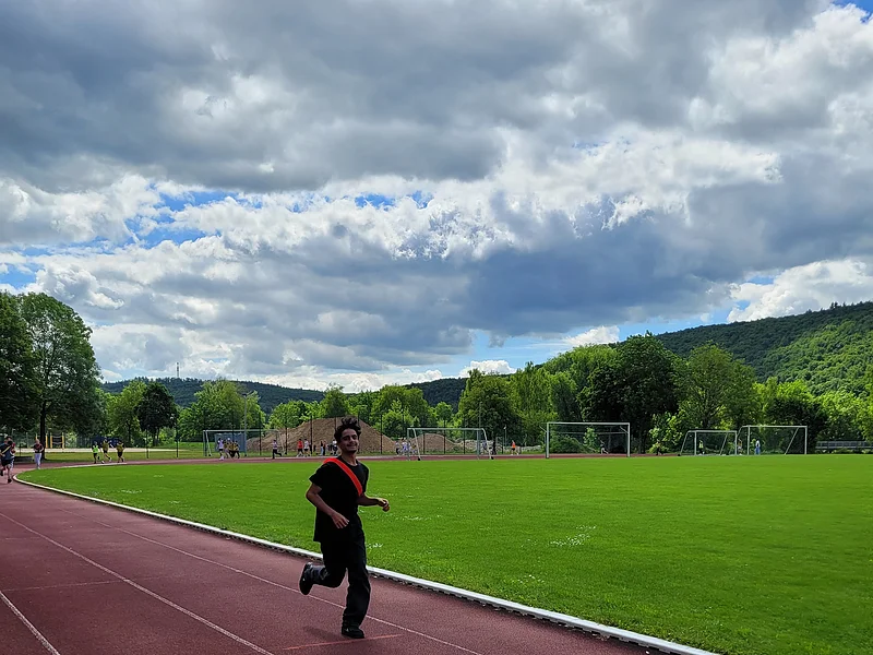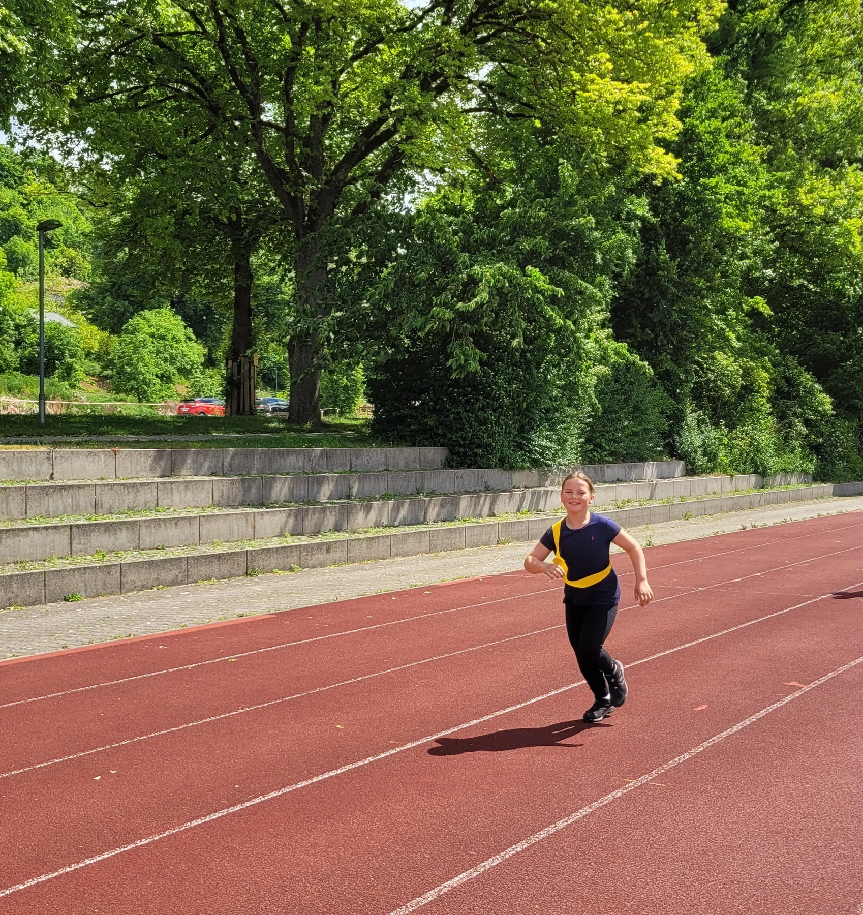 In der 3. Stunde liefen die 5. und 7. Klassen los zur Bepo. Dort angekommen wärmten sich die Kinder auf, während Herr Grienberger motivierende Musik dazu abspielte. Dann ging es endlich los!
