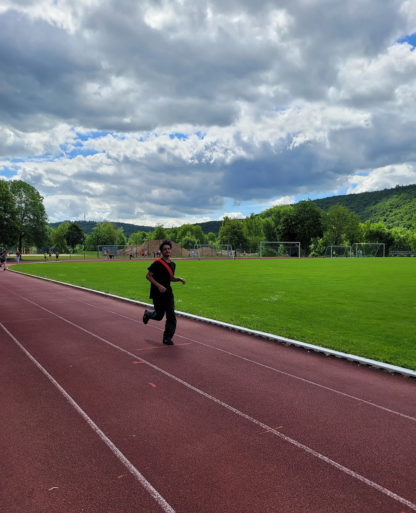 Eine Runde war 400 Meter lang und die Kinder hatten 30 Minuten Zeit zu laufen. Sie rannten los und im Nu war die Zeit vorbei. Danach erholten sich die Schüler/-innen im Schatten, während jetzt die 6. und 8. Klassen kamen und an den Start gingen. In den Klassenzimmern lag als Belohnung ein Obst- und Gemüseteller für die Läuferinnen und Läufer bereit. An dieser Stelle danken wir dem Elternbeirat herzlich, dass er sich um diese Spende für unsere Schüler/-innen gekümmert hat.